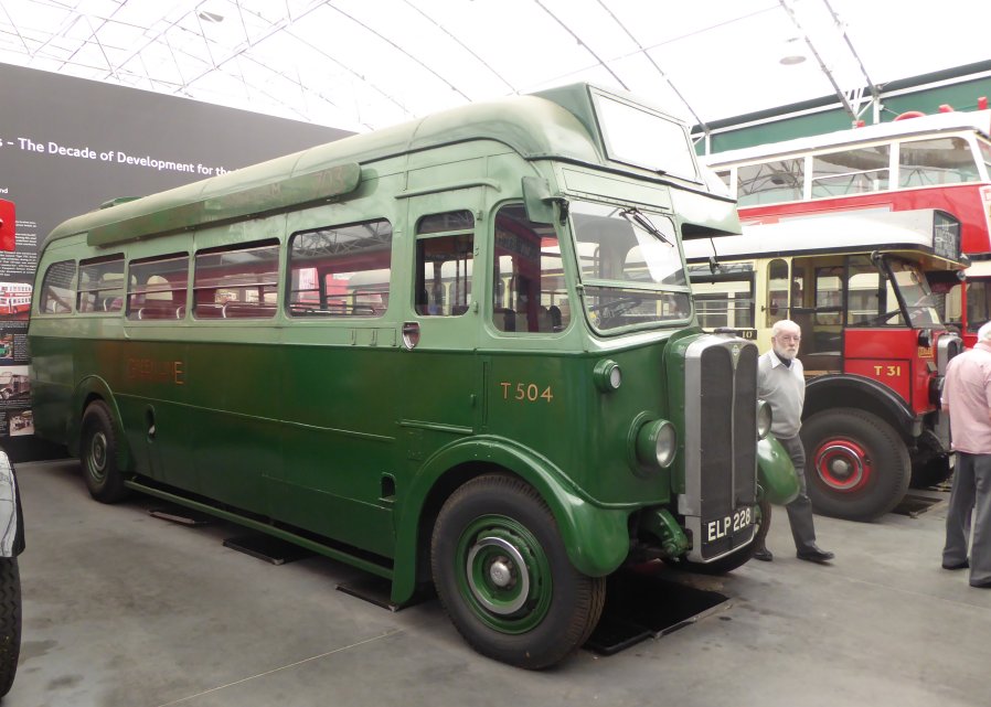 The Whipsnade service was revised in 1947 to use Daimlers and STLs from Romford. The Kings Cross terminus of the 727 was amended to Judd Street. Later in 1947 the 709, 710 and 711 were extended from Baker Street and took over the 724 and 725 routes to High Wycome and Chesham, rendering the 6Q6s at Amersham surplus to Green Line requirements. Other types helped out on Green Line, especially as reliefs at weekends, including 4Q4s, 9T9s, 1/7T7/1s and STLs. Epitomy of post-war Green Line elegance: T504 at Brooklands, London Bus Museum, April 2017.The Green Line routes then settled down, with the 10T10s more or less route bound until the advent of the Green Line RFs in late 1951. Even then some 10T10s were required as spares, and for expansion of Green Line services: the new orbital south London 725 service was introduced using them alongside RFs in 1953.