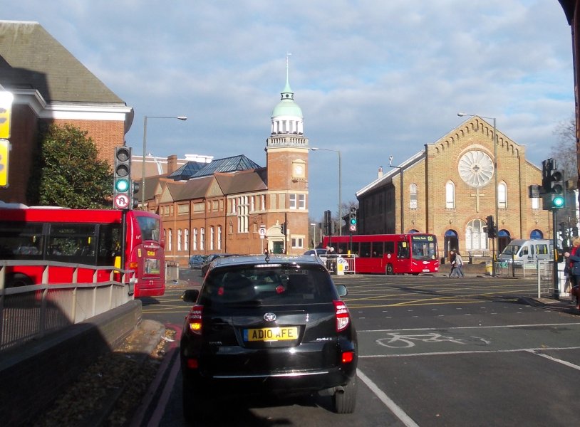 94: Petts Wood Station to Bromley (West Street)Nevertheless we were all aboard the gleaming Routemaster ready for a punctual departure at 1045.I settled into a seat behind the bonnet, and we were away. With John driving the progress is always crisp, efficient and utterly professional. We didn't lose time. We didn't speed, either. We rumbled westwards through Petts Wood, passing the Crooked Billet at Southborough, where the 94 originally terminated, as did its predecessor, the 136. We turned out onto Bromley Common from the new spur road, just on the south side of The Crown, and headed for Bromley. Traffic was much lighter than expected, and the road was almost deserted as we passed St.Lukes. We followed the old road down Masons Hill to the dip at Bromley South, and then the big Leyland engine growled as we climbed the hill past Bromley South Station and on up the High Street. The narrow part of the High Street, leading to the Market Place, has long been pedestrianised, so perforce we turned right through the link road, pausing at the stop by what used to be The Glades. Now it is called something totally unmemorable. Metrobus Scania OmniCity 514 was ahead of us on the stop, on the 358 to Crystal Palace via half the Western hemisphere. I pondered that these too are getting long in the tooth in TfL's eyes, 514 now being over nine years old. Will we see one in preservation? We passed through the bus-way onto Kentish Way, and roared up to the junction at the Town Hall, where Tweedy Road, Widmore Road and Kentish Way all meet. Every bus route in Bromley comes through here. 514 turned left ahead of us, as one of Metrobus' brand new EnviroDarts headed south on the 126. We in turn turned left, pausing at the main shopping stop, then turning right into West Street, to stop outside Sainsbury's. Colin Rivers and I alighted there, to head back round the corner to the Market Place.