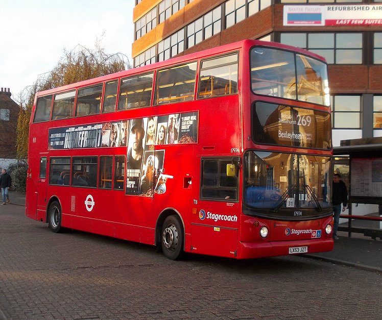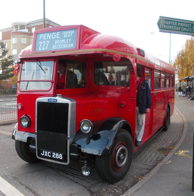 Bromley Classic Bus Mini Running DaySunday 8th December 2013Prepared on Wordpad by Ian Smith, 13th December 2013Afternoon tea-time: RM on the 9494: Bromley North to Petts Wood (RM1397)I walked the short distance from the Town Hall to Bromley North Station to catch the southbound Routemaster.At the station stop I found Stagecoach Trident 17974 on the 269 to Bexleyheath, still looking good at ten years old. The next bus onto the stand was sixty-four years old and still going strong: TD95 had arrived from Penge, and was about to head back there. The blinds were changed on the TD ready for its next rounder. Just then the Routemaster, RM1397, bustled up behind, and I scurried back to climb aboard for a trip south on the 94. I settled in behind the driver, John Huxford, to enjoy the ride down therough Bromley. We headed south on Kentish Way, and passed through the gap onto the southern section of High Street. We made stops to pick up on the High Street and at Bromley South Station, then dipped down into the Ravensbourne Valley then back up out of it, up Mason's Hill. We headed south across Bromley Common, amazingly at a steady 30mph! Just beyond the Crown we turned left for Southborough and Petts Wood. We passed the old 94 terminus at the Crooked Billet, then continued along into Petts Wood. We turned in the station west approach, and stood at the 208 special journeys stop. The light was fading, with the setting sun casting a ruddy glow. 94: Petts Wood to Grove Park (RM1397)We were soon away again, chatting companionably on the transverse seats at the rear. Outside it was growing dark as we headed back into Bromley. We climbed the High Street, where the shoppers were thinning out, but picked up a few in Widmore Road and West Street to take north towards Grove Park.
