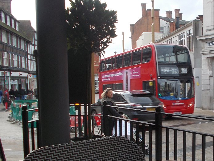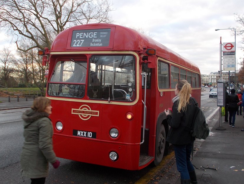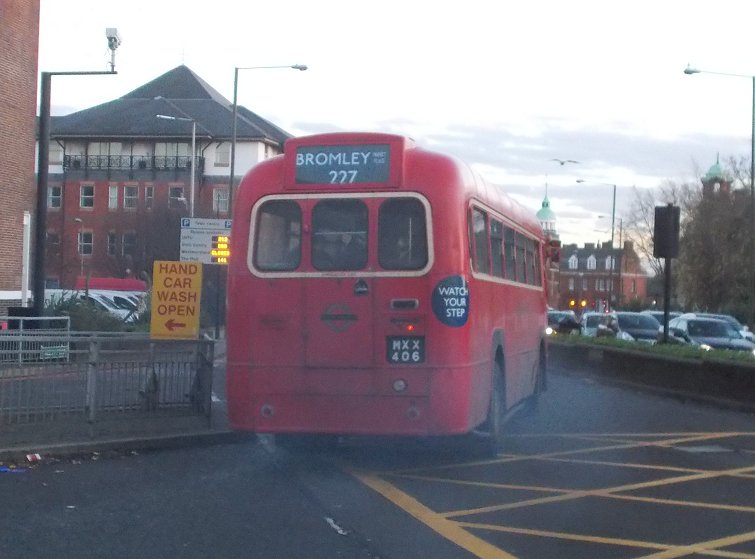 227: Bromley North to Crystal Palace: RF368Just after two o'clock RF395 appeared, and zipped past before I could focus my camera: I had forgotten that the 227s no longer stop on the Market Place as they used to. I finished my meal, paid for it (important to remember that, at my age!) and headed along Widmore Road towards the stop at the URC and Town Hall. I had taken too long. RF395 pulled away from the stop before I got there, and was not going to stop for me. I watched it disappear onto the Market Square.I crossed the road and headed for Bromley North Station. Citaro 26103 passed me on the last leg of its journey. I reached the station stop in time to see RF368 go past and turn in to Mitchell Way. There it joined a bus jam caused by long single-deckers crew-changing. EnviroDart 36547 on the 314 seemed to be the ringleader. 36309 behind it on the 246 just could not edge past to get into the private bus stance in the old station goods yard. The log jam cleared, and RF368 unloaded, then pulled round towards the pickup stop in front of the station. RM1397 was just setting off southwards on a 94 to Petts Wood. I climbed aboard RF368. This is one of my favorites, having been one of the RFs that I regularly used on the 227 to get to school. We set off down to the Town Hall, and turned right to head for the Market Place. The road renewal in the Market Place has been completed, so we were soon round the corner into High Street North. I used to come through College Slip from North Street, cross the road and look to see if a Penge-bound 227 was coming. Today, as we approached College Slip and the Swan & Mitre it was Metrobus OmniCity 528 that pulled out from Swan Hill onto the High Street. We turned down the hill (properly Beckenham Lane), and weaved down the sinuous hill to Shortlands, where we ducked under the low railway bridge. We climbed up the west side, then rolled down into Beckenham, forking right to serve Beckenham Town Hall and Church. We turned down to Beckenham High Street, and snaked along to the War Memorial roundabout, then on to Clock House. We went over the Mid-Kent line at the station, then on under the tram line and the Crystal Palace railway, and on into Penge. We passed RF395 as we went up Penge High Street, as it was setting off back to Bromley. We continued up through Penge, went under the Brighton line and toiled up Crystal Palace Hill. Up on the Parade we motored along to the bus station, where this year we were allowed to turn, but not stop. We made our turn, and terminated at an eastbound stop on the north side of the parade. 227: Crystal Palace to Penge: RF368The blinds were set for Penge. We cannot give crew breaks at Bromley North, but are allowed to stand at The Crooked Billet, on the historical 227 stand. So crew breaks are there. We rolled down the hill and back into Penge, where we found ourselves behind VLA69 (I think). This cannot be long for this world (at least in London), being ten years old. We pulled in to The Cooked Billet stand, where we found RF429 completing a break.227: Penge to Bromley North: RF429RF429 has an advantage in this weather: doors. RF368 has no doors or Conductor bar across the front window, but RF429 does. Such buses, converted for omo, were a rarity in my school days. Then, although converted they were not allowed to be used with doors operating. Bromley had none, but occasionally one borrowed from New Cross was to be found on the 227, with the doors non-operational. Anyway, I was welcomed aboard, and we soon set off on the familar home-run to Bromley. TD95 scurried past as we passed the old grammar school. We had an uneventful trip back to Bromley North Station, where I alighted. It was a quarter to four, and the light was going rapidly. I decided to walk down to West Street and catch the 94 to Grove Park. RF429 purred away on another round-trip to Penge.. Photos by Ian Smith. Click on any of them for a larger picture.