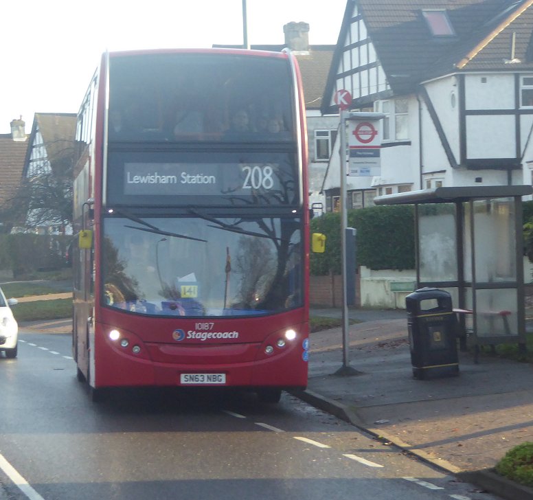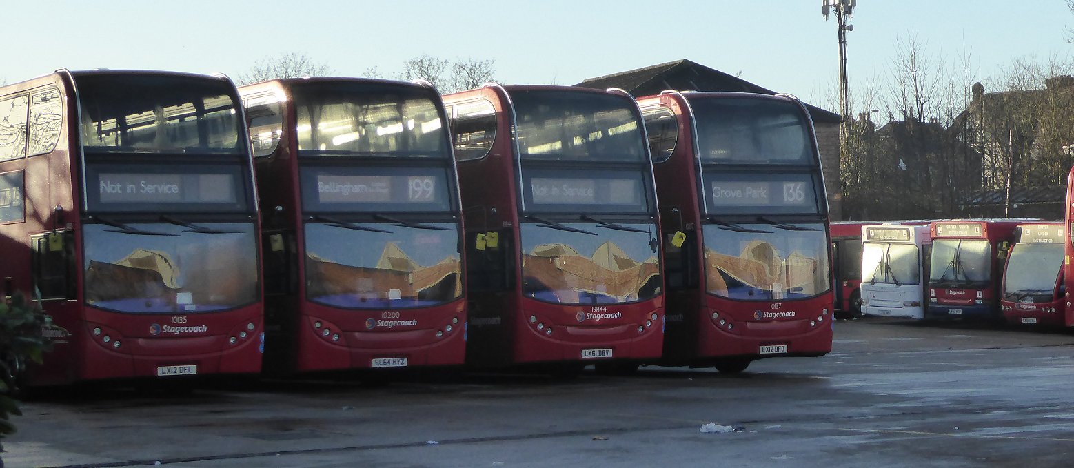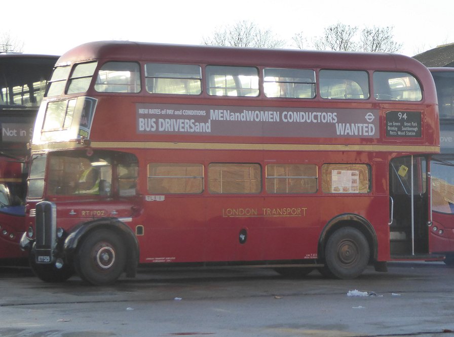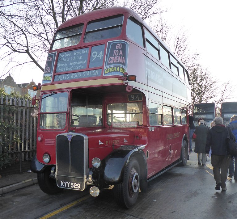 ![]() Bromley Mini Running DaySunday 11th December 2016Prepared by Ian Smith, 14th December 2016.Part One: RT1702 on the 94136: Grove Park to Catford Garage (19836)I walked to Grove Park Station, and on to the bus stand. There EnviroTrident 19836 was just starting up for the trip on the 136 to Elephant & Castle. It pulled round to the departure stop. I climbed aboard. The bus pulled out to the traffic lights at the top of Downham Way. Metrobus EnviroDart 755 came across the crossing, heading to take up service, probably on the 126 at Eltham. We turned right, past the old tram terminus, and down Downham Way to meet London Road. The bus headed north past Southend Pond and stopped by Catford Garage. EnviroTrident 10187 rumbled past on the 208, heading for Bromley, Petts Wood and Orpington. As we approached the garage a line of buses was just visible over the south wall of the yard. Just one solitary Trident, presumably either withdrawn, a spare or a trainer. I joined the group standing outside the garage gate. Then I went on to take a look at one of the new buses - a Volvo, 13086, that was standing on the street ready for a 47 trip. I looked through the gateway. A line of EnviroTridents stood in the south yard (10135, 10200, 19844, 10137), while a mixed line-up of single-decker trainers stood by the west wall. 94: Catford Garage to Grove Park and Petts Wood (RT1702)I heard the unmistakeable sound of an RT engine starting up, somewhere back in the garage. Then it stopped. We waited. We waited until the time we should have been at Grove Park. Then RT1702 appeared. It transpired that on start-up the RT had blown a fuse, which had to be replaced.