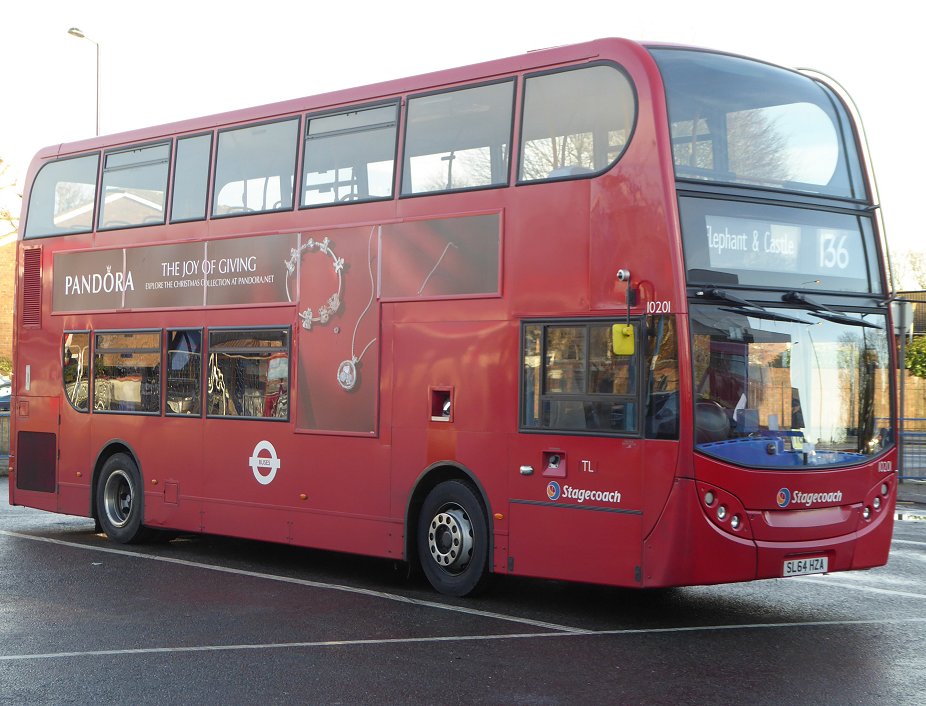 94: Grove Park to Bromley North Station: RM1397The RM, now empty, circled round to stand in the middle, next to EnviroTrident 10201 on the 136.After a few minutes it was back out to the pick-up stop. We re-joined and headed to make a pick-up at the stop under the station canopy. Then it was back across the Borough boundary into Bromley, up over the steep little hill and down to the New Street Hill stop. Here I used to catch the bus on my way to school. We continued into Bromley, to pause at Bromley North Station. I alighted. TD95 was right behind, completing a 227 journey... Photos by Ian Smith. Click on any of them for a larger picture.