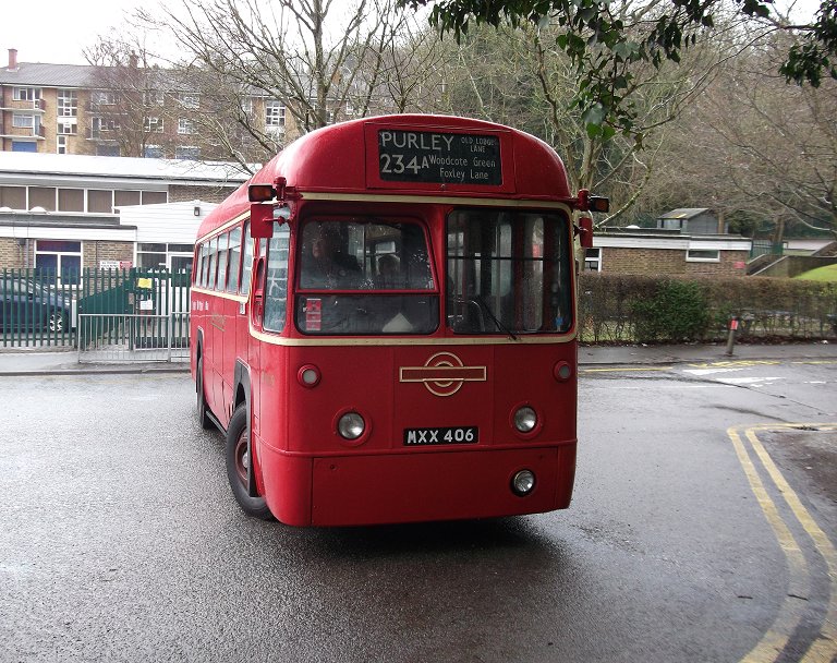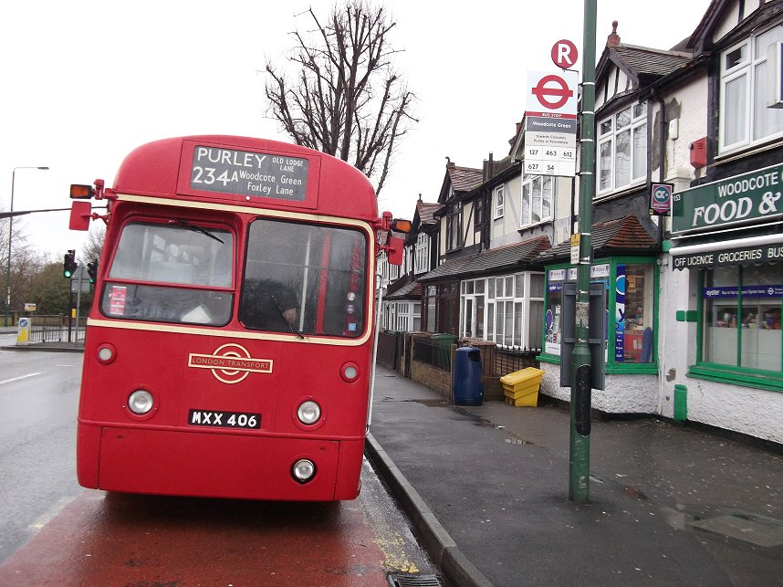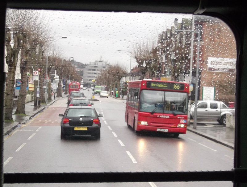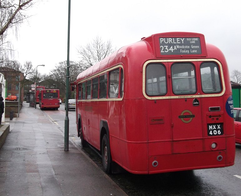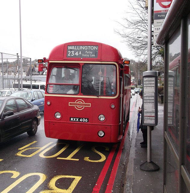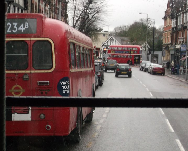 234 Routes RevisitedSunday 17th March 2013Prepared by Ian Smith, 18th March 2013.234A: Croydon Garage to Wallington: RF429We set off south along the Brighton Road, pausing to pick up at the stop just south of the garage, then following RF486 south past the Red Deer. There were glimpses of other red single-deckers through the rain-spattered windscreen: Arriva's PDL123 on the 166 to West Croydon, and Abellio's EnviroDart 8526 on the 407 to Sutton. One belonging to German state railways, the other to Netherlands state railways.We rolled down into Purley. DAF Alexander DLA250 rumbled up the other way on a 60 to Streatham Vale. RF486 was turning left in Purley, towards Selsdon, while we were to turn right. The vagaries of traffic meant that we caught them up as we approached The Fountain. Proving that the timetable was working well to provide connections, RT3251 passed across in front of us, heading from Wallington to Selsdon on the 234. Briefly the two RFs were side by side as we went round the roundabout. We made the turn right round to the west, to climb away up Foxley Hill. And there came RF395, rolling down the hill on its way back from Wallington towards Old Lodge Lane. We climbed up out of the valley, and turned right at the very wet roundabout onto Woodcote Road, and headed north, through Woodcote Green and down into Wallington. There we terminated, not at the old 234A stand, but at TfL's request, round the corner in Shotfield.