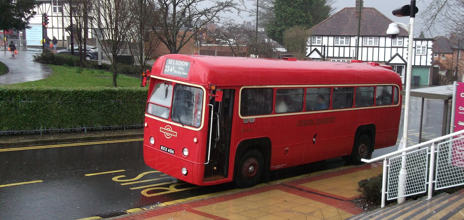 234A: Hackbridge to Wallington : RF429Our next trip was a short one, just along the road to Wallington, where we would be taking a meal break. Nevertheless, we had some passengers along to Wallington station, where we dipped down to duck under the railway before turning right to reach Shotfield.There we found RF395 already on the stand. We pulled past, then backed onto the front of the stance that TfL had asked us to use, leaving space for the other RF to pull out. A few minutes later it did, heading for Old Lodge Lane again. We sat and ate lunch. RF486 sneaked up behind as we ate, and took the rear position on the grid.