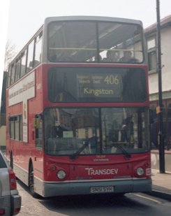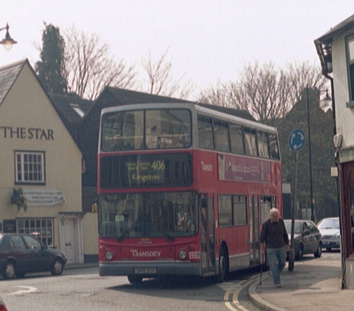 Later in its career TA209, now with Transdev at Tolworth, rounds the corner in Ewell on a 406 to Kingston from Epsom (April 2007).TA229-263: second production series for FulwellMore of the same arrived at Fulwell in April and May 2002. They were due to take over the 65 from Armchair and the 71 in June, the latter again to replace Metrobuses, but, unusually, were early. An early takeover on the 71 could not be done because of street furniture limitations (bumps, mainly). The 85 was due to relinqish its Northern Counties DAFs, on hire since London Country lost the route back in 1999. New Wright Volvos were due in June, so the opportunity was taken to put in the Tridents on a temporary basis. The stored TAs were also put to use on the 411 (normally VA Olympians) and the 281 (still M). The end of May saw new TAs used for the Rugby Specials to and from Twickenham. June came, and there was a shuffle, with the TAs taking up their intended roles on the 65, N65 and 71.