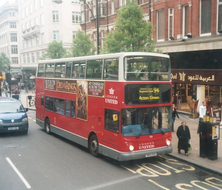 DisplacementThings stayed fairly stable until 2008-9. New double-deckers took routes won by London United/Transdev, and the ALX400 VAs took over from the remainder of the old Olympian VAs. There was a rash of loans and temporary transfers of TAs and VAs while the fleet was fitted with the i-BUS information system. The TLAs remained closely attached to route 94 into the shopping heart of London's West End. Some of them received vinyl wraps for overall advertising, usually leaving the fronts in fleet livery.