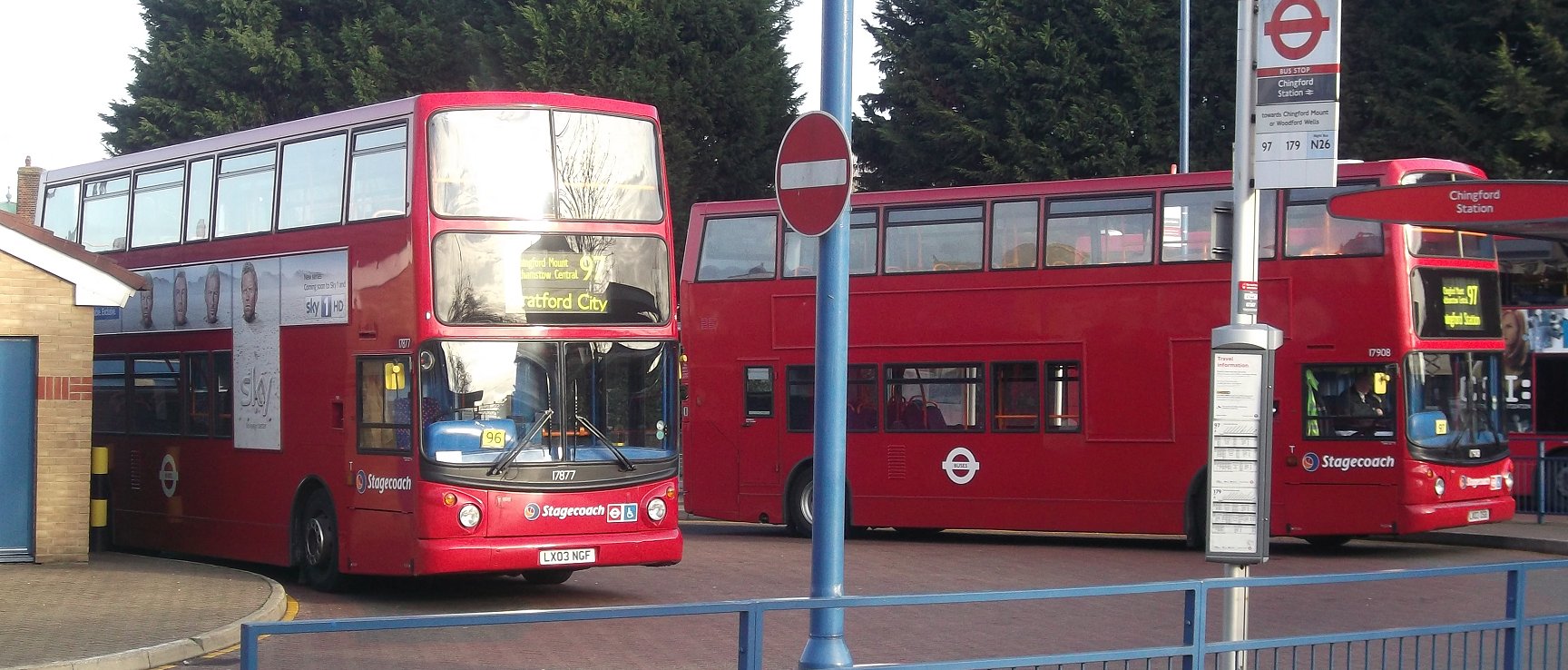 17877 and 17908 on 97 at Chingford Stn, in January 2012, by which time the southern terminus was Stratford City.TragedyOn July 7th 2005 a terrorist bomb exploded the rear of 17758 whilst on diversion on route 30, following a Piccadilly Line explosion. Fourteen passengers were killed, many injured. The driver survived, severely shocked. The rear end of the bus was blown outwards, like an opened flower. It was removed to Fort Halstead for forensic examination.17762 also suffered an explosion a few days later, having some windows blown out. The Police also took this one away.