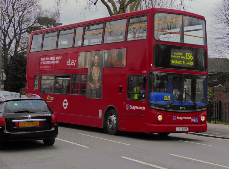 2/12 T in service on 55 to Oxford Circus: plain red, Stagecoach $