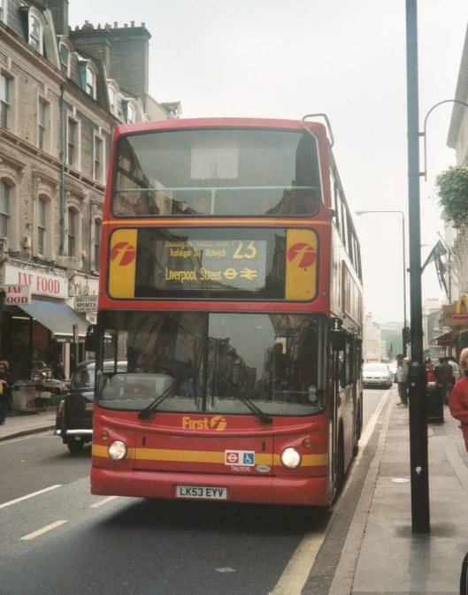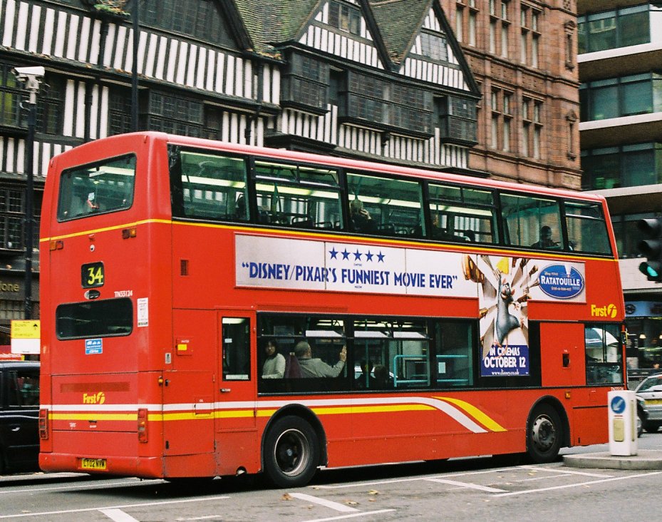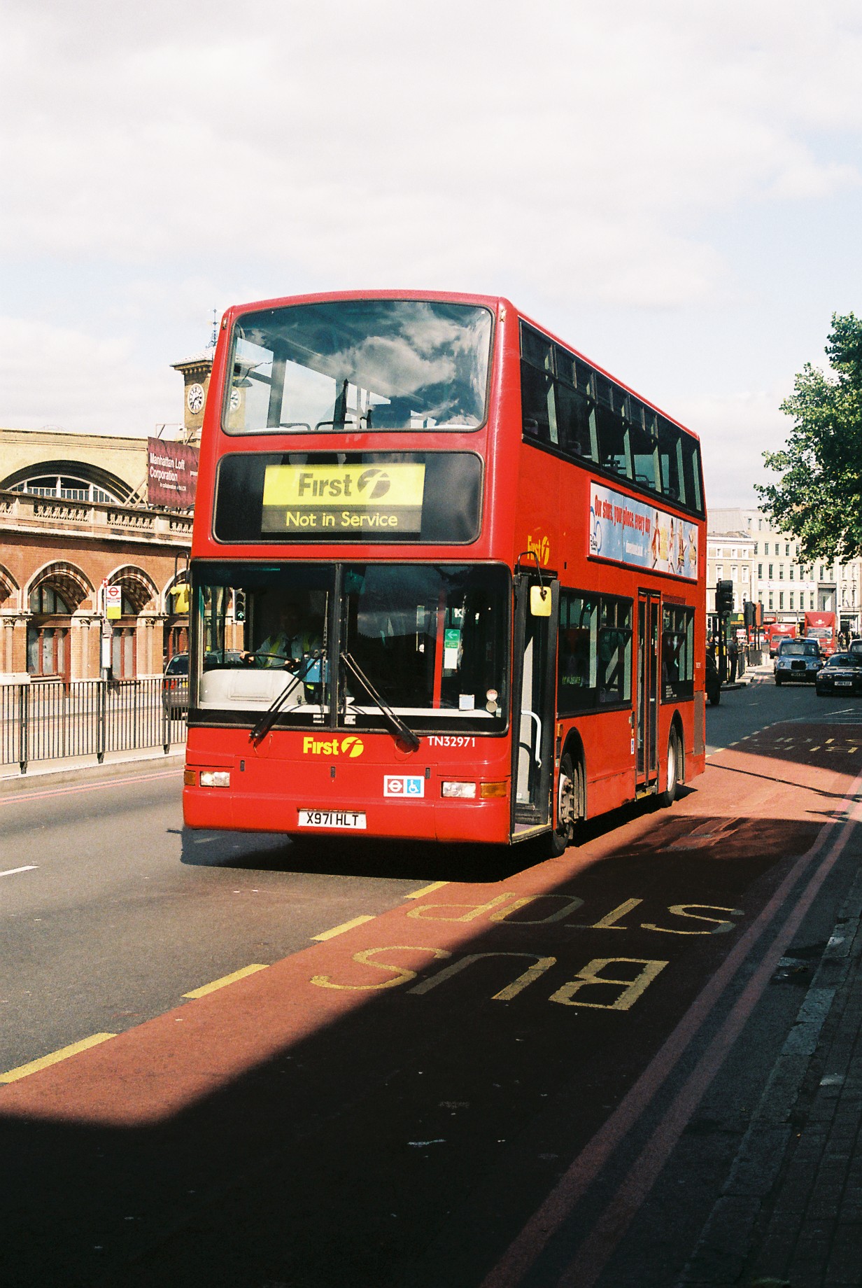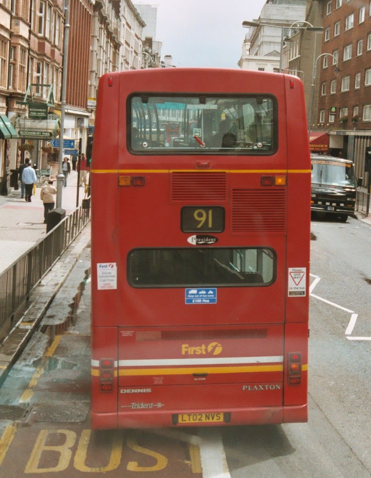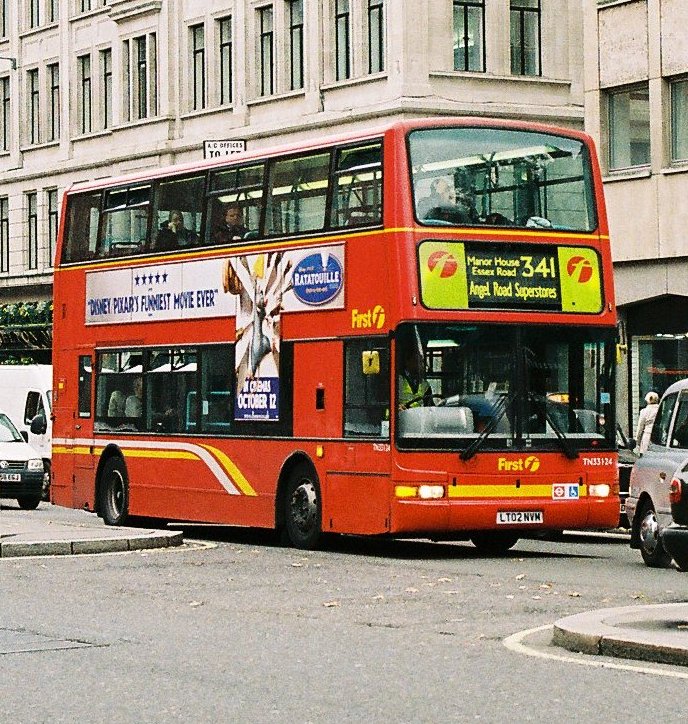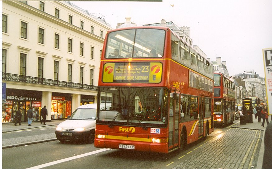 TN 810 T810 LLC LBM113 p57 */00 DM on First 25 to Ilford, Stratford Station TN 829 T829 LLC LBM110 p4 */99 X on Centrewest 18 to Euston Station, Wembley TNL921 W921 VLN LBM115 p9 */01 on First Uxbridge Buses 7 to Russell Square TNA32940 W840 VLO LBM515 p0 6/07 on hire to Metroline for 297 to Ealing Broadway TNA32948 W948 ULL LB2007 p26 6/07 on hire to Metroline: used on 460 to Willesden TN32960 X612 HLT TLB521 p0 12/07 AV on hire to London United: on 120 to Hounslow, AV TN 963 X963 HLT LBM116 p9 */01 X on First Gold Arrow 27 to Turnham Green TN32963 X963 HLT TLB517 p50 8/07 S on hire to London United: on 94 to Acton Green, Marble Arch TN32964 X964 HLT LB2007 p43 12/07 TW on hire to London United: on 57 to Streatham Hill TN32965 X965 HLT LB2007 p43 8/07 S on hire to London United: on 49 to Shepherd's Bush Green TN 975 X975 HLT LBM117 p5 */01 ON on First Challenger 258 to Watford Junction Station, Harrow TN 986 X986 NLP LBM117 p5 */01 G on First London 105 to Greenford Station, Greenford Bdy TNL1016 LK51 UYT LBM118 p7 10/01 on First London 259 to Kings Cross, Edmonton Green TNL33032 LK51 UYZ LBM572 p49 3/12 at Ecobuild event at Excel, single doorway, new Shuttle livery TN33054 LN51 GKL TLB555 p0 9/10 NP on 341 to Waterloo TNL1003 LK51 UZS TLB479 p0 */04 R on 25 to Ilford TNL1073 LN51 GDE TLB450 p00 1/02 DM on 123 to Ilford, Wood Green TN 1113 LT02 NVX TLB454 p21 4/02 NP on 91, gold-wrapped for Queen's Jubilee TN33247 LT52 WUY TLB529 p45 8/08 DM on D6 to Hackney Central, Bethnal Green TN33330 LK03 UFG TLB555 p0 9/10 UX on U3 to Heathrow Central, Uxbridge