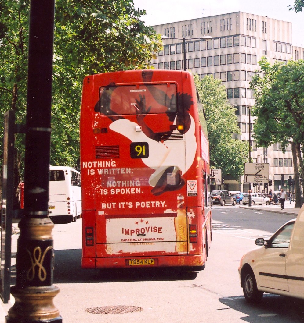 */07 NP in service on 91 to Trafalgar Square: red, no willow bands $