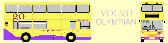 Go-Coachhire of Otford bought four of the ex-Dublin Volvo Olympians, primarily for their schools contracts and railway replacement work, where only large double-deckers would do. They were acquired in 2010-12. The first, S869HCG, had been Dublin RV440. It came from Happy Al's on Merseyside in April 2010, and was converted to single doorway, becoming H47/31F. It was repainted in the startling yellow and mauve company livery. L47VDM, ex Dublin RA194, came from Vale Travel, Aylesbury, in August 2011. This one stayed dual-doorwayed, H47/27D, as did the other two, L707SGW and L709SGW, bought in February 2012. All three went into yellow and mauve. All except the first were displaced by the end of 2015, when disabilities legislation limited their use. They were replaced by PVL Volvo Presidents.