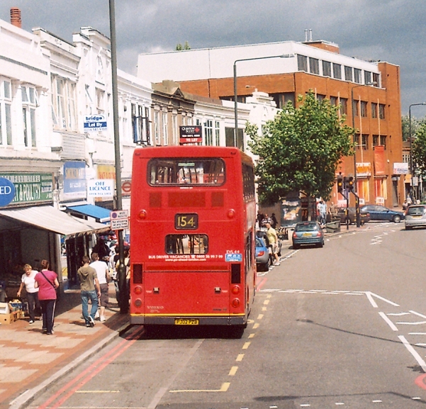 RT1702 came up the long hill past us, now clockwise on the 156. We turned left to reach Morden Station by the approved route, and swung into the station forecourt past RF503 on the 80.