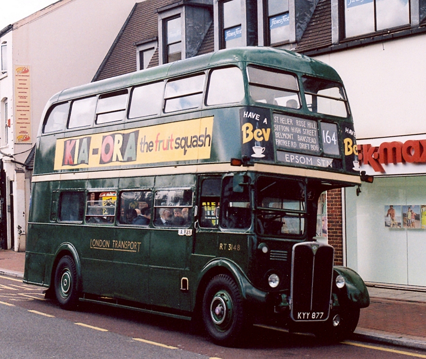 We crossed the busy Brighton Road, and passed Banstead Station. Fir Tree Road and Alexandra Road gave John a chance to put his foot down. The RT reached 28mph (according to the speedo), John told me later. Certainly it caused one of those 30mph reminder lights to flash at us! We were soon going much more slowly round the Epsom one-way system to reach the terminus by Epsom Clock.