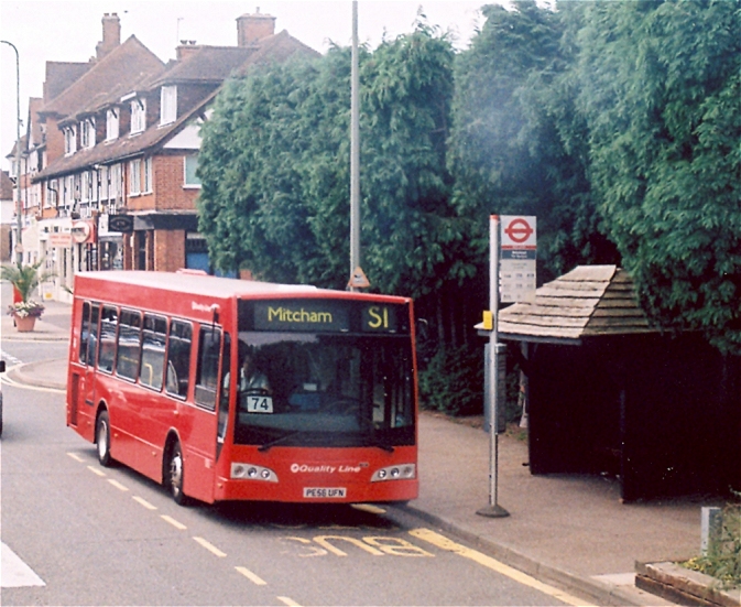 We continued on through Sutton, and out to Belmont, where we met modern East Lancs-bodied EnviroDart SD48 heading north for Mitcham on the S1 for Quality Line.
