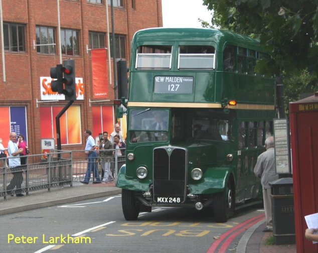 Around us at Morden went other buses: STL2377 on the other side of the road, on the 156, and green RLH48 on the 127 (photographed here earlier in the day by Peter Larkham).