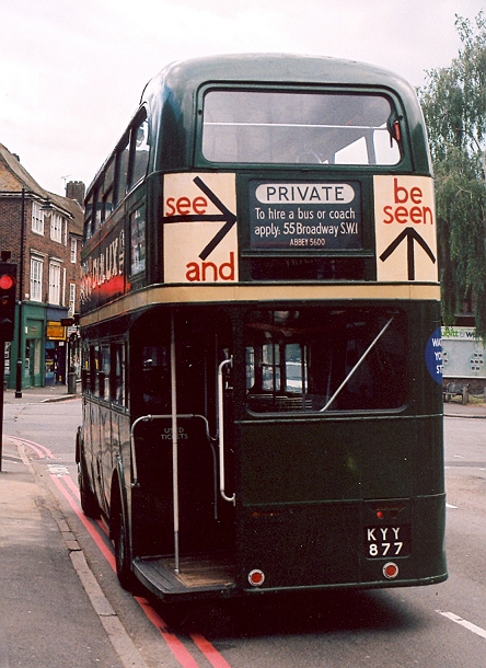 RTW75 had now finished its booked runs, and was to run back light to Sutton Garage. I cadged a lift, and we set off under the once-notorious bridge. (The road has been lowered under it since the RLH era). It was on the way into Sutton, when I checked my film counter and found it on "E" that the horrid truth dawned about my lost pictures. Bad moment.