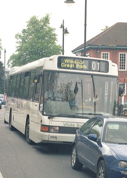 The parade continued: open-topped City Sightseeing Metrobus WLT428 was plying its normal trade, while RML2666 was heading for the bus station with another 441. Further down in the town we passed White Bus DAF/Optare Delta S158JUA heading towards Windsor Great Park (a preorogative still granted just to this company).