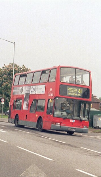 As we headed east from Slough we passed one of London United's Plaxton Presidents (VP106), a reminder that the 81 still does reach Slough.