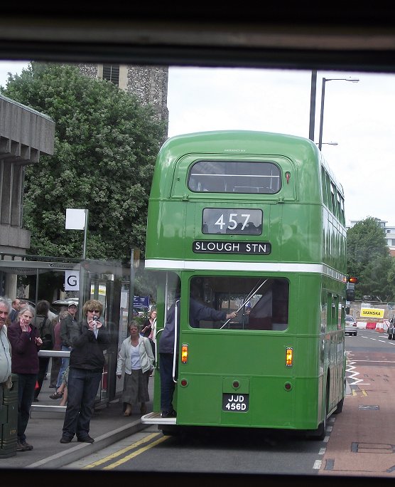 It is not far from Slough to Eton and Windsor, but the weak but protected bridge between the latter still means an appreciable diversion on the by-pass, crossing the river west of the two towns, then winding a way back into Windsor. As we wove our way round to the riverside, and them towards Windsor Castle we met two Green Line RTs in quick succession: RT3254 heading for Pinewood on the 457D, and, a minute later, RT3491 heading for High Wycombe on the 441. You wait forty years...