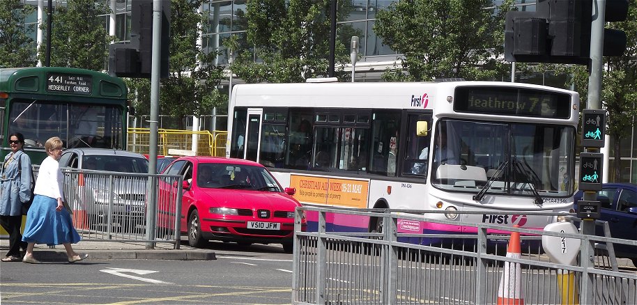 We were soon away again, rounding the shopping block, and passing VN37878 preparing for a return trip to Acton. We rounded the big roundabout, and took the Slough Road.