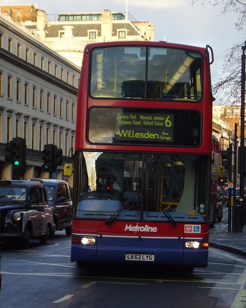 The tour kicks off just after sun-set. I travelled across from Charing Cross to Marble Arch on Metroline's VP511 on route 6. On the way I passed some of the Routemaster remnant that some enthusiasts refuse to admit still exists. RM2089 on the 15 was just approaching Trafalgar Square, pursued by bendi-bus Mercedes MA152. I wonder if the RMs will outlast them?