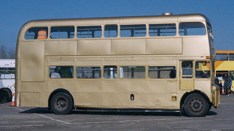 While London was persevering with the Routemaster the rest of the country was looking to the Leyland Atlantean and Daimler Fleetline. London had trial batches of both. XF3 was a Country Area Daimler Fleetline. These buses had a lockable gate so that the upper deck could be locked out of use in off-peak times to allow one-person operation. (In those sensible days it was illegal to operate double deckers without two crew). XF3 was also experimentally fitted with a Cummins V6 engine for a while. After refit with the standard Gardner engine it had the last Certificate of Fitness to expire in the class, and so was the last in service in December 1981. Twenty years on XF3 looks good in preservation. RME1 is an advert for the modular construction used on the Routemaster. Originally in 1966 a short front-entrance vehicle operated for BEA by London Transport, it was bought by LT in 1979 for use as a trainer (RMA29). Its staircase was removed. It went to Strathclyde Scottish for spares in 1988, then did the round of dealers and scrapyards without succumbing. In 1992 it was acquired by Shaftesbury & District and a long-term rebuild was started. It emerged in 2000 with a complete extra bay, and with a staircase amidships. Part Four: Newer Buses