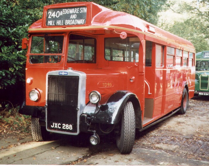 Post war Tiger: preserved 2TD2: Cobham's TD95The grand standardisation plan looked for a replacement that could handle all these types of traffic: private hire, Green Line, country bus and city bus. Experiences with the various Q type single-decker buses had been good, but the offside engine with its anti-clockwise motion had produced lopsided handling and maintenance headaches. The TF with its offset underfloor engine had been a success. The next logical step was a high-floor bus with a centrally mounted engine underneath. AEC produced a Regal IV prototype, UMP 227. London Transport tried it out on the Country Area 355 route from St Albans, and was impressed. The RF concept was born! (UMP 227 survives, preserved at Cobham Museum).