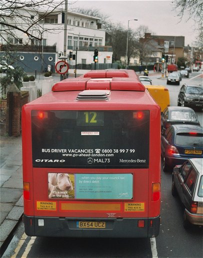 Turning right into Brockley Rise took us ages. We reached the Chandos (terminal for the erstwhile 36A), and the decision was made to head directly for Peckham. Another left turn took us towards Peckham Rye. We joined the 12 route, and crawled behind a bendi-bus for a while. An LDP - a Low-floor Dennis Plaxton - slipped past to take the back-roads eastwards. It seems odd that the earlier members of this class too are being sold off now as old!