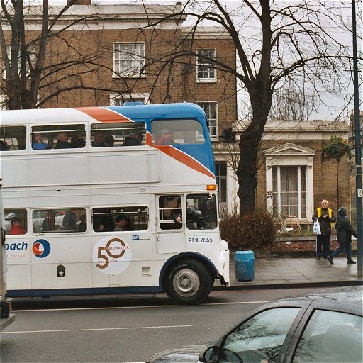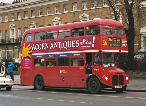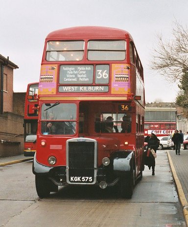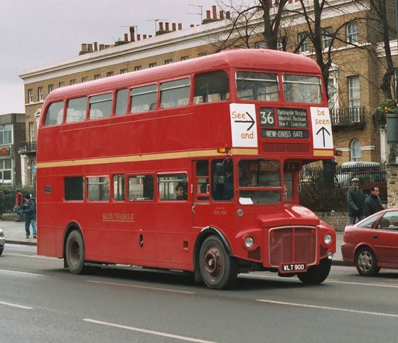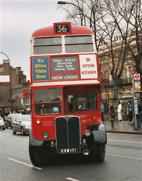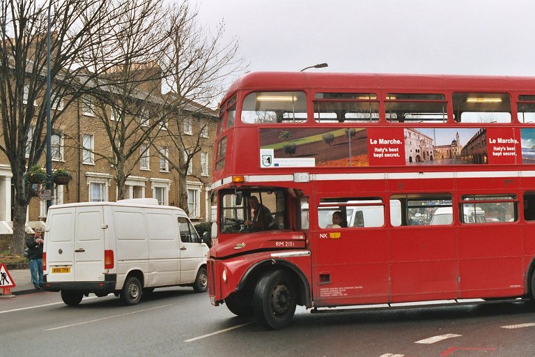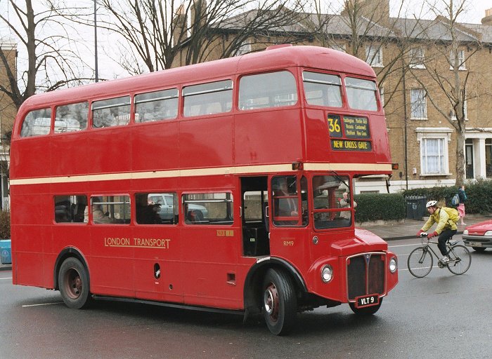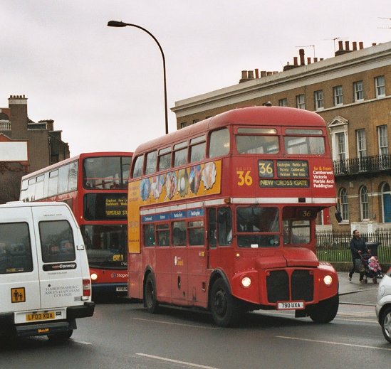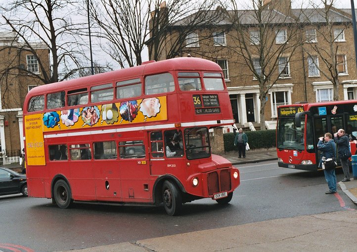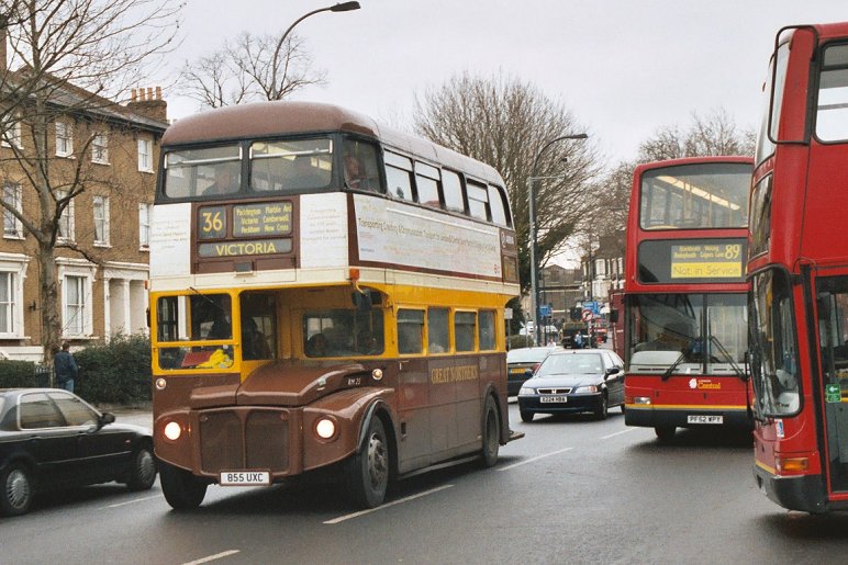 Then green-liveried RML2317, belonging to Metrobus, came trundling along from Peckham, and brown-liveried RM25 squeezed through the traffic on its way back from Hither Green Station on the 36, heading for the traditional terminus at Victoria.