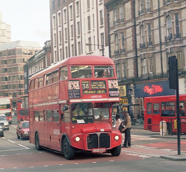 We crossed the road and watched for a bit longer, with continued variety, including a clutch of GreenLine coaches. From our new vantage point we could see the 38s heading out again. RML2534 headed for Clapton Pond, and RML2356 set off on a short-working to Piccadilly Circus.